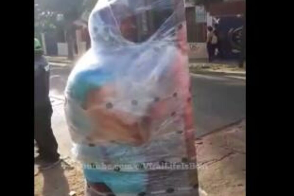 BUDALA SE VERALA UZ BANDERU, a onda se uhvatio za betonsku ŽARDINJERU! (VIDEO)