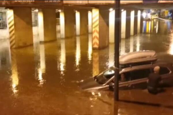 UŽAS, AUTO SE POSLE JAKOG PLJUSKA ZAGLAVIO U PODVOŽNJAKU U BUČA POTOKU: Sve je snimljeno! (VIDEO)
