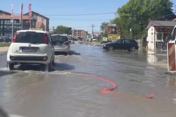HAOS U SREMSKOJ KAMENICI, VODA ŠIKLJA NA SVE STRANE: Napravila se reka na ulici, automobili JEDVA PROLAZE (VIDEO)
