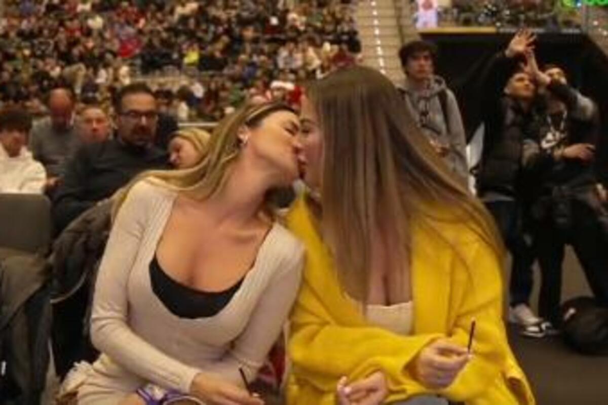 DVE PLAVUŠE SE LJUBE NA TRIBINAMA DOK HRVAT PSUJE U POZADINI! Košarka u drugom planu, svi gledaju i ne veruju