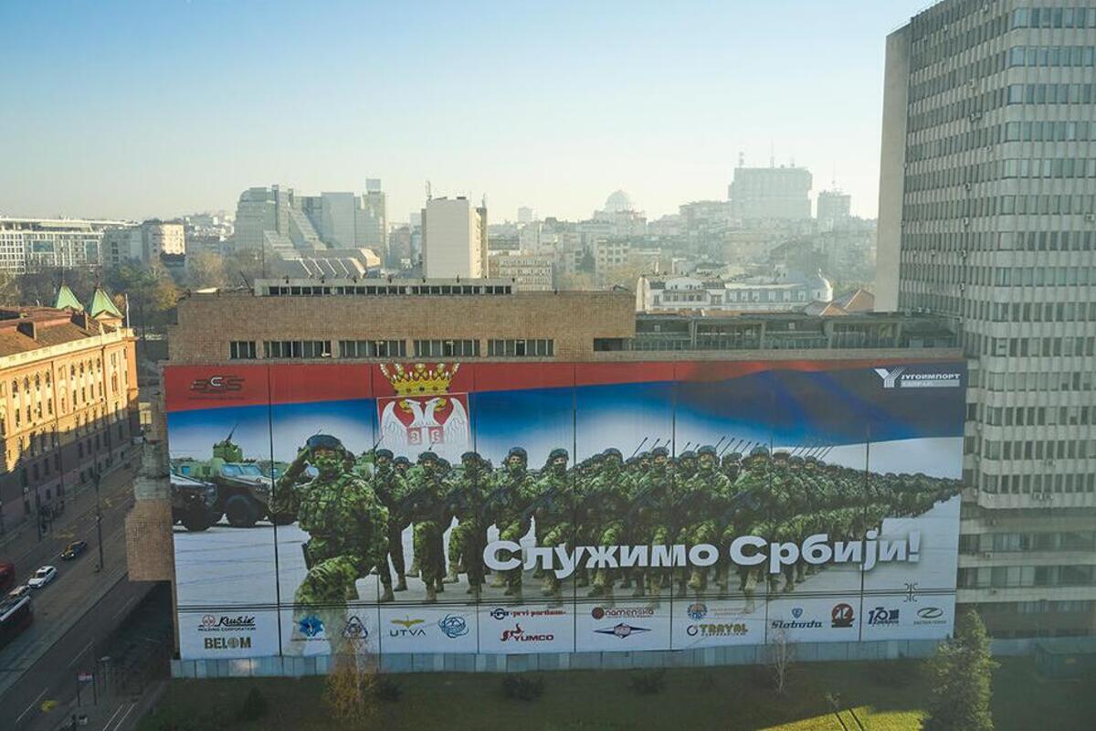"SLUŽIMO SRBIJI!" Moćan baner na zgradi MINISTARSTVA ODBRANE, stroj vojnika pod punom opremom (FOTO) (VIDEO)