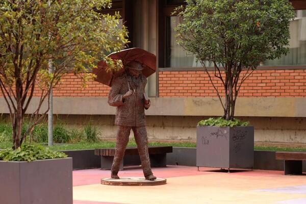 DOBIO JE SVOJE MESTO: Skulptura Raši Popovu postavljena na istoimenom platou (FOTO)