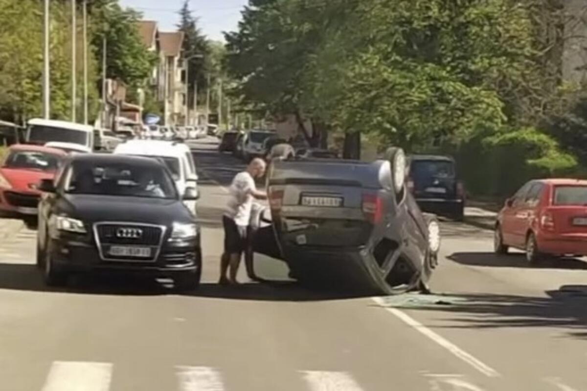 PREVRNUO SE AUTOMOBIL U MARIČKOJ ULICI: Vozač besan izašao iz vozila i zalupio vrata (VIDEO)