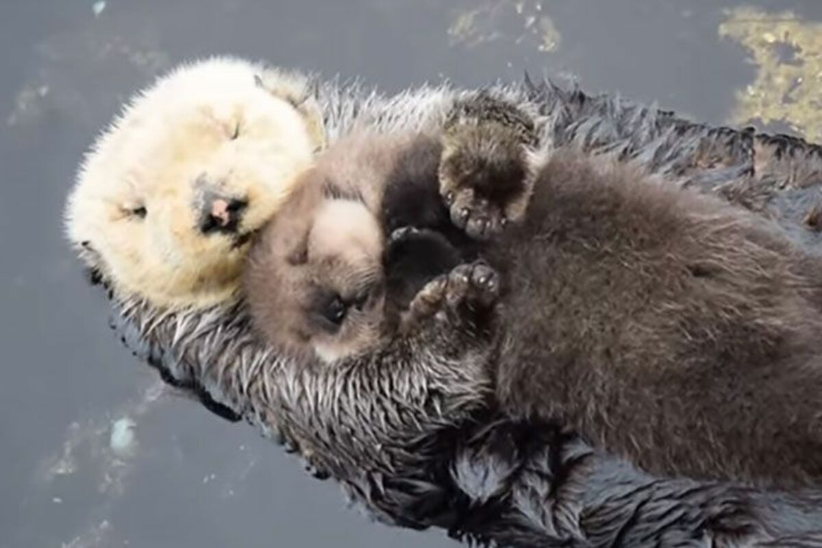 Plutajući spavanjac: Vidrica u sigurnom majčinom skutu! (VIDEO)