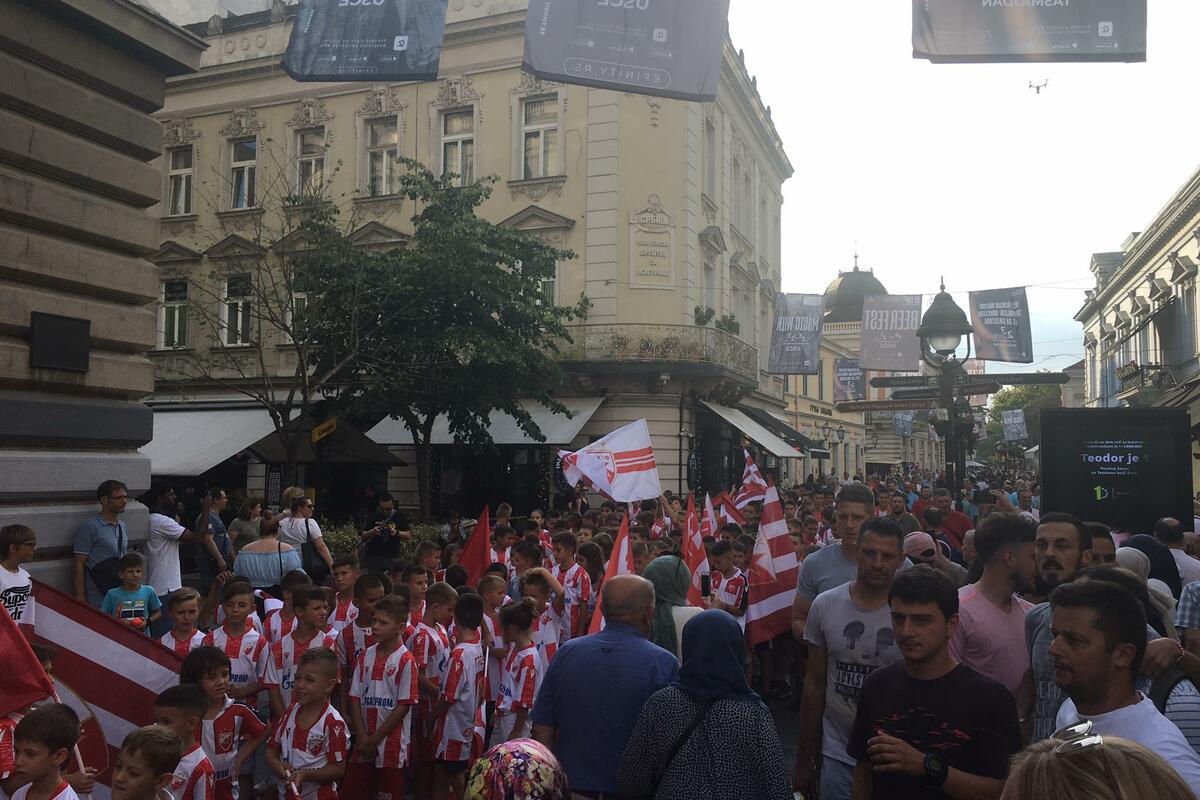 BEOGRAD U ZVEZDINIM BOJAMA! Crveno-beli dresovi i barjaci viorili se Knez Mihailovom ulicom! (VIDEO/FOTO)