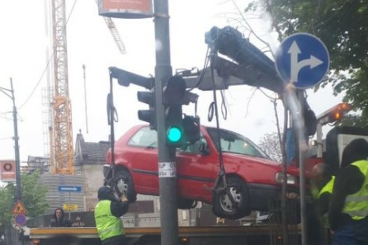 KARAMBOL U KNEZA MILOŠA! Pauk odneo automobil, ali je prvo ŽESTOKO UDARIO U SEMAFOR (FOTO)