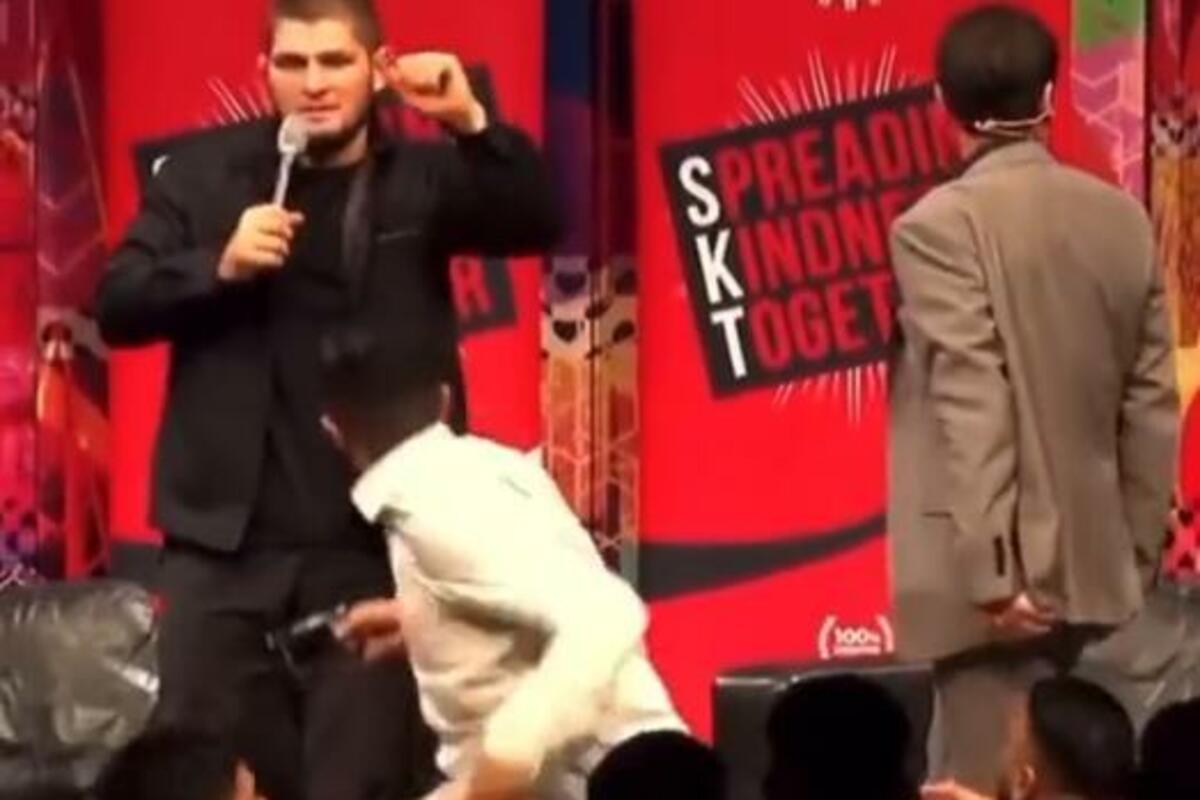 INCIDENT NA HABIBOVOJ PROMOCIJI: Navijač krenuo na Nurmagomedova, pa se pokajao... (VIDEO)