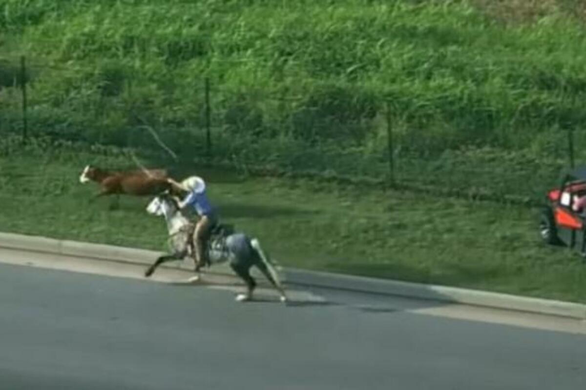 KRAVA NAPRAVILA POMETNJU U SAOBRAĆAJU: Kauboj je savladao, SCENA kao iz TEKSAŠKIH FILMOVA! (VIDEO)