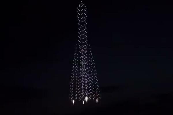 SPEKTAKL IZNAD VELIKOG NOVGORODA: Stotine dronova se poređalo u obliku simbola RUSKOG OSVAJANJA SVEMIRA! (VIDEO)