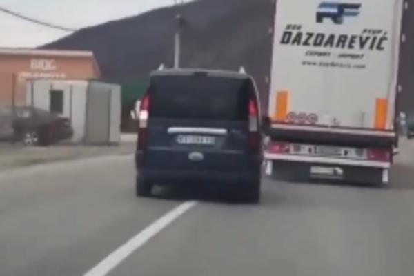 BAHATA VOŽNJA! Vozač kamiona preticao preko PUNE LINIJE I UMALO IZAZVAO SUDAR! Niko nije mogao da ga zaustavi!