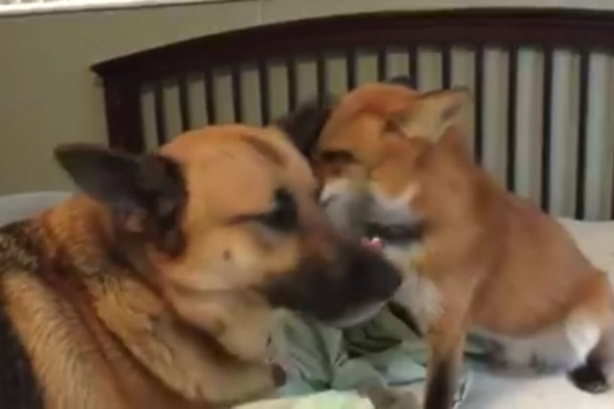 Potpuno blesava lisica uživa da gnjavi svog drugara vučijaka! (VIDEO)