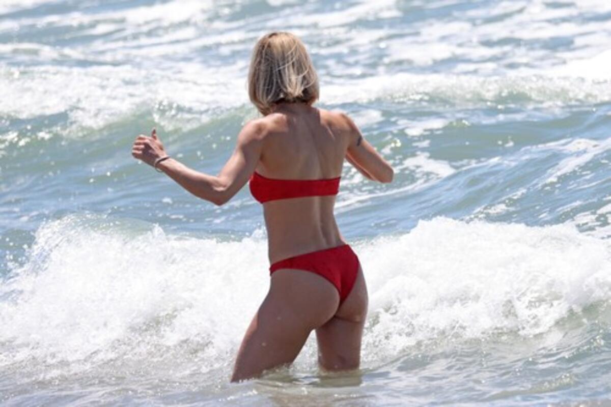 ISPLIVALE GOLE SLIKE VODITELJKE, SVI GLEDAJU U PLAVUŠINU ZADNJICU: Od ovakvih oblina se i MORE UZBURKALO (FOTO)