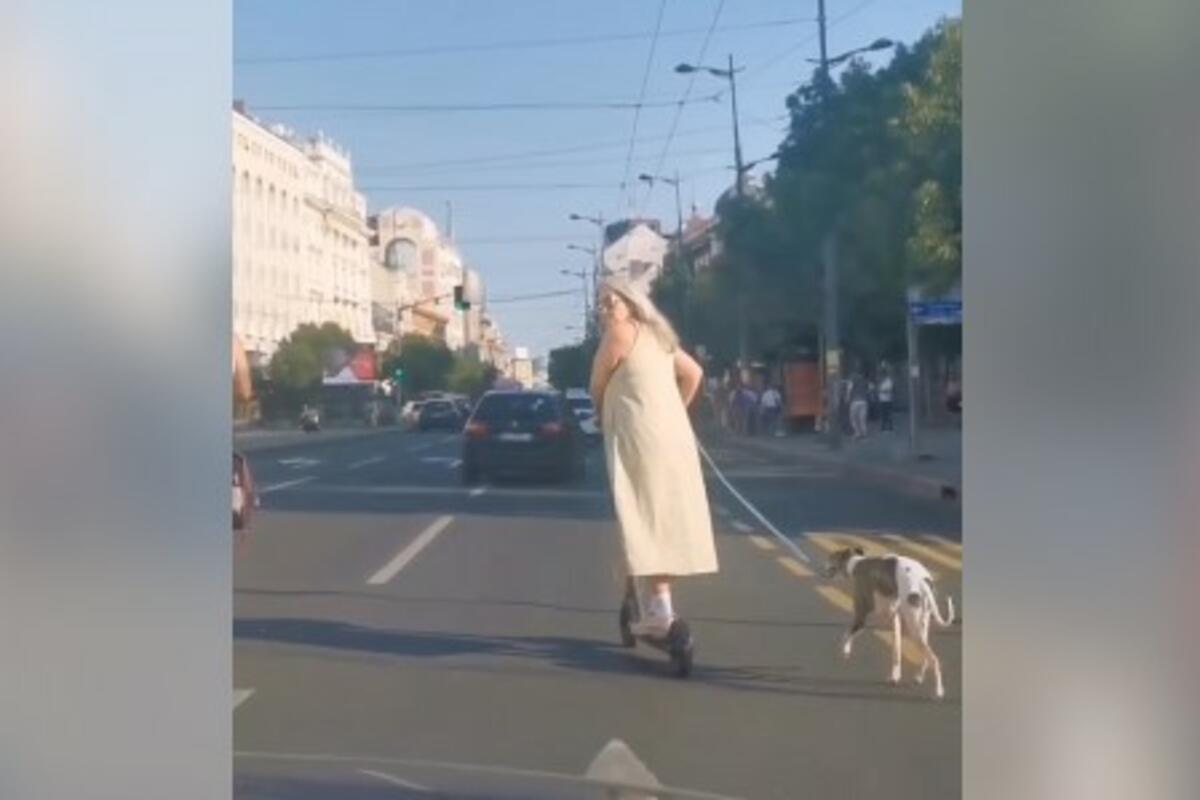 NEMA KRAJA BIZARNIM SCENAMA U BEOGRADU: Žena vozila TROTINET po ULICI, a na to je i VUKLA PSA (FOTO)