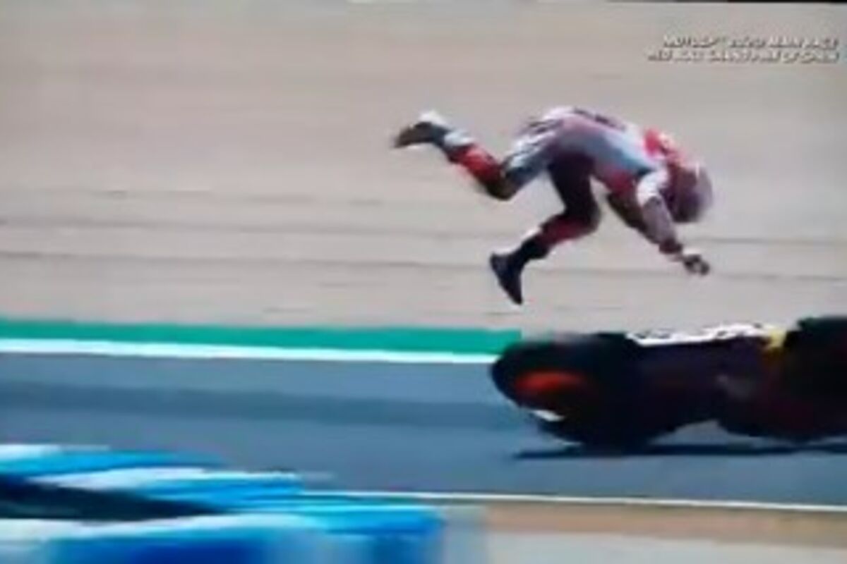 PAKLEN PAD SLAVNOG MOTOCIKLISTE: Pao sa motora na početku trke, a onda ga je vozilo poklopilo po leđima!