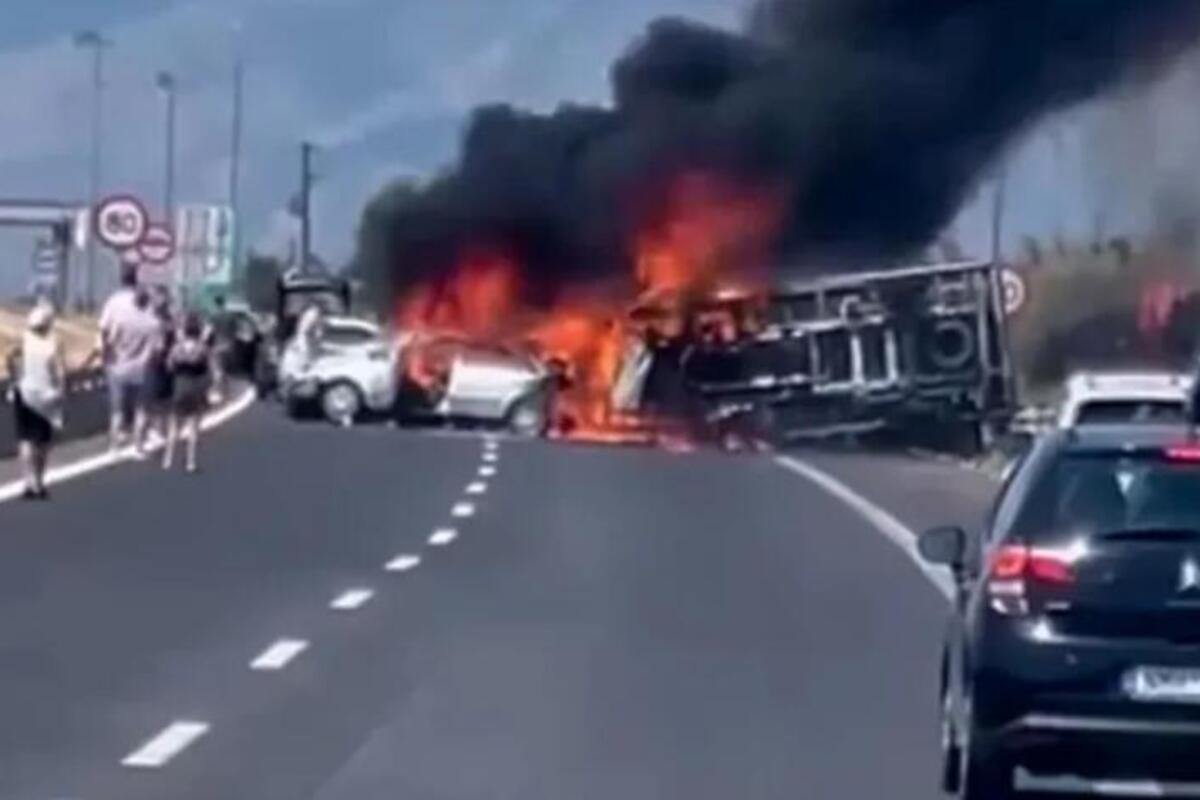 Izbio ogroman požar na naplatnoj rampi kod Obrenovca! Vatra guta automobil, širi se gust dim (VIDEO)