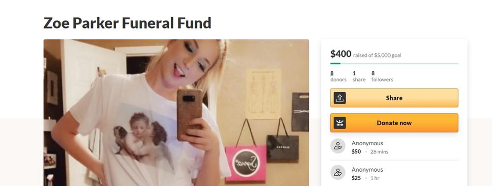 "S tugom vas obavještavamo da je Zoe Parker preminula u snu 12.septembra oko 2 sata ujutro. Imala je samo 24 godine", navodi se na stranici GoFundMe gdje je pokrenuta kampanja za prikupljanje sredstava kako bi se pokrili troškovi pogreba.