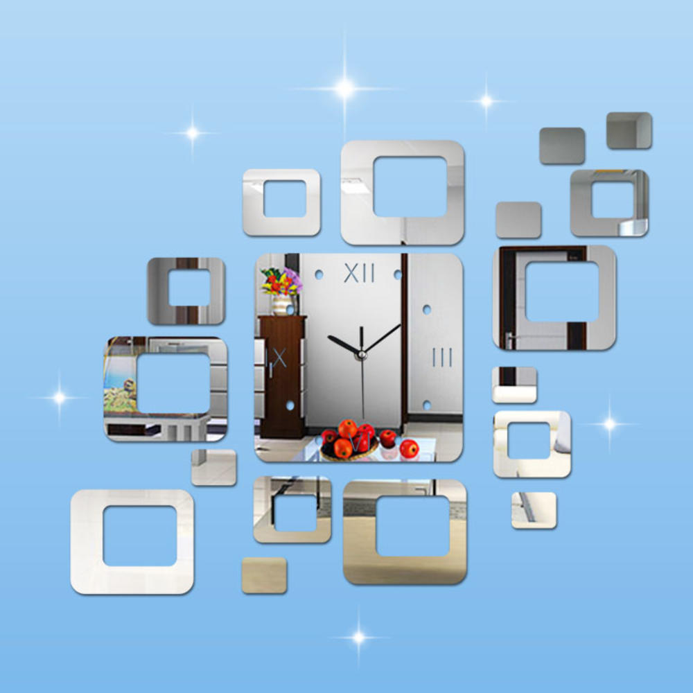 Akrilni samolepljivi zidni sat Vila 14G008S prelepog dizajna, dimenzija je 30 cm x 30 cm, od materijala plastika – akril sa efektom ogledala. Dekoracije su debljine 1 mm i lepe se na zid, a centralni deo se kači na ekser.
