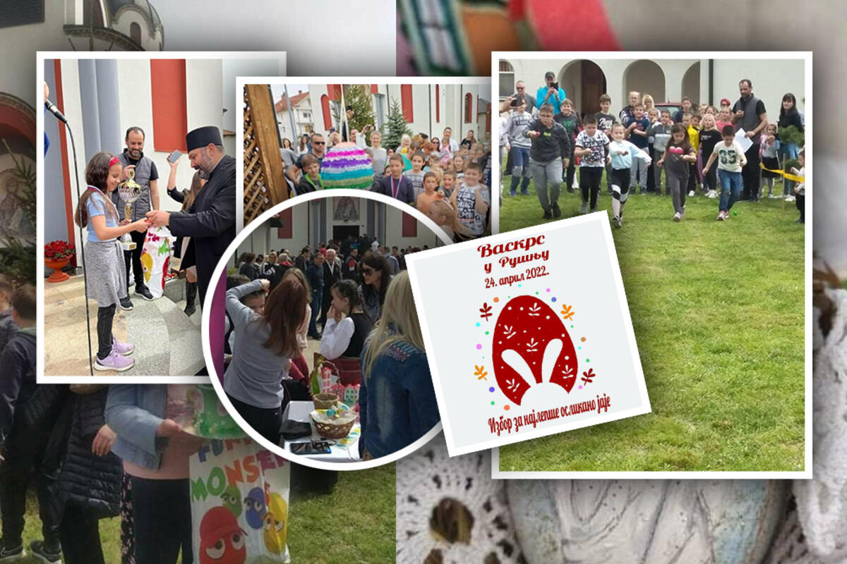 Pred oko hiljadu meštana u porti hrama Svete Petke u Rušnju održana je manifestacija "Vaskrs u Rušnju 2022" u organizaciji Udruženja građana Rušnja.