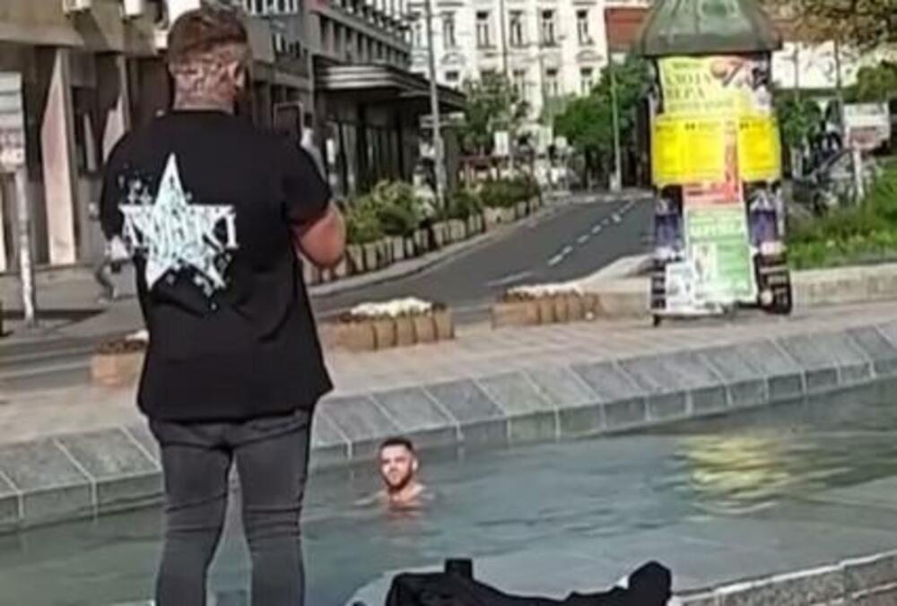Video je osvanuo na društvenim mrežama i izazvao je lavinu komentara. Momak je rešio da iskoristi lepo vreme, pa se okupao u fontani na trgu Nikole Pašića.