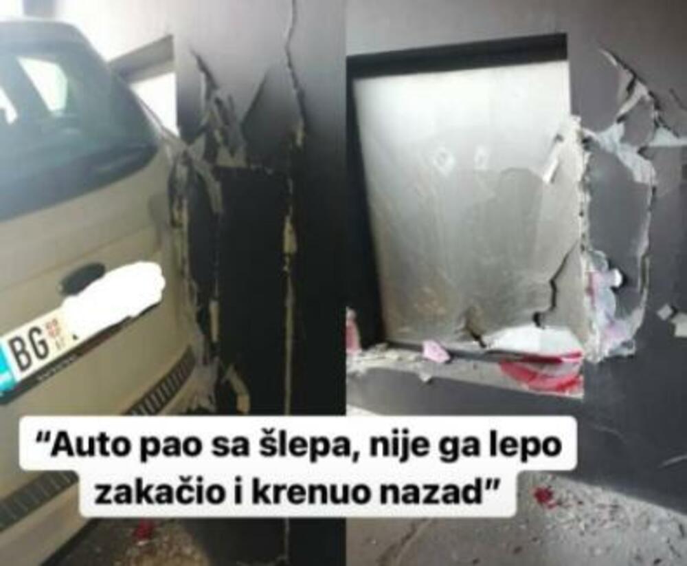 "NIJE GA LEPO ZAKAČIO I KRENUO NAZAD": Auto ispao sa šlepera u garaži tržnog centra (FOTO)
