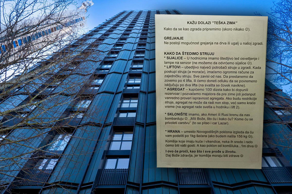 Leto još nije ljudski počelo, a svi već razglabaju o tome da nam dolazi "teška zima", pa umesto rasprave ili brige dobro dođe malo našaliti se. Tako je jedna upravnica zgrade u Beogradu odlučila da se sa stanarima na duhovit način našali.