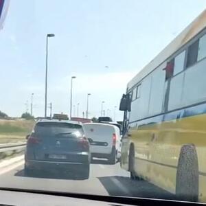 Takođe, velika gužva je i na samom mostu, ali sa druge strane, odnosno iz pravca Novog Beograda ka centru grada, s obzirom na to i tu skroz levoj traci stoji parkirano nekoliko automobila.