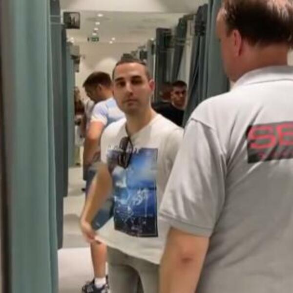 Kako se vidi na pomenutom snimku, muškarca, za kog se sumnja da je uznemiravao žene po kabinama, čuvalo je obezbeđenje zaposleno u tržnom centru dok na licu mesta nije došla i policija.