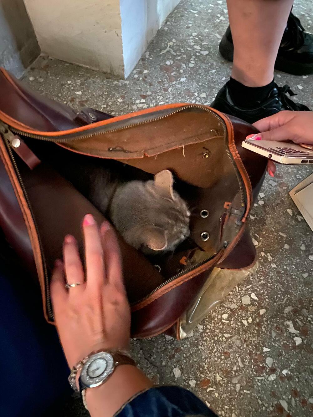 Drugu mačku je smestila u torbu koju je iznela iz stana. Osim te torbe, uspela je da iznese još jednu torbu sa stvarima i ništa osim toga.