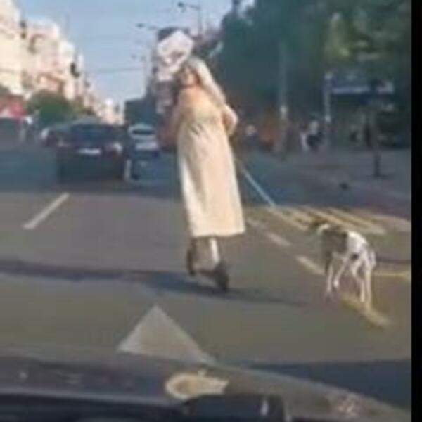 Juče su na beogradskim ulicama pas i žena na trotinetu izašli u šetnju, a taj snimak je obišao internet. Ova scena je privukla brojne poglede.