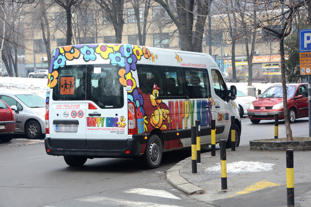 Vozač mini kombija koji prevozi decu baš ne haje za to kako je parkiran.