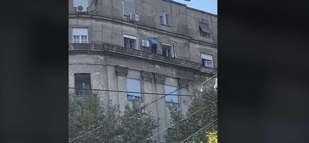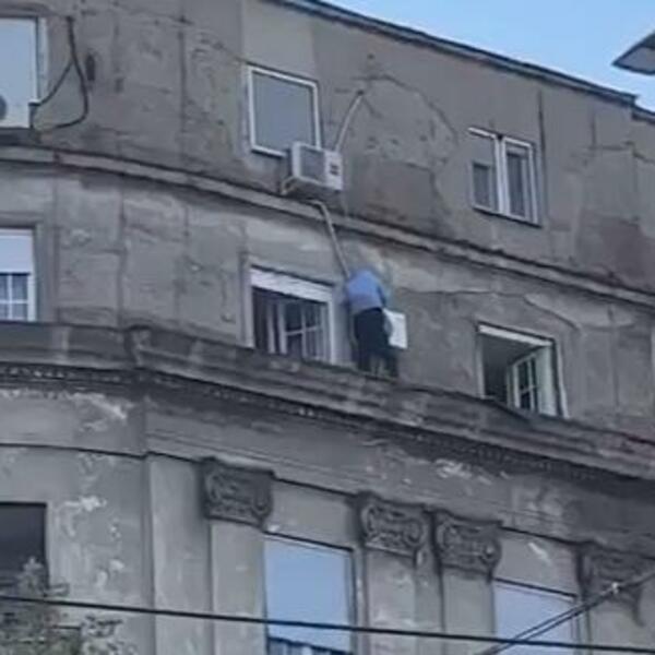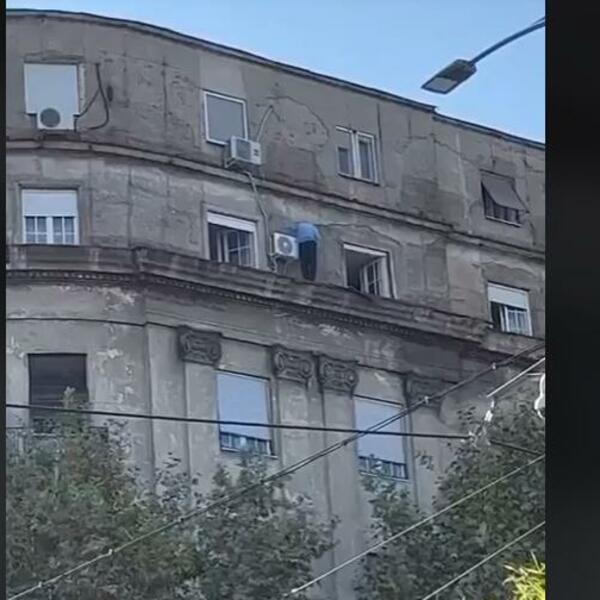 Naime, stariji čovek se je iz nepoznatih razloga izašao kroz prozor i hoda po ivici zgrade. Ceo prizor je snimljen i objavljen na društvene mreže, a kako se na snimku vidi, u pitanju je stara, oronula zgrada.