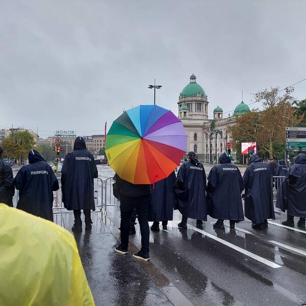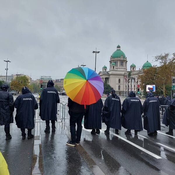 15.50 Koordinator Evroprajda stoji pored kordona policije: