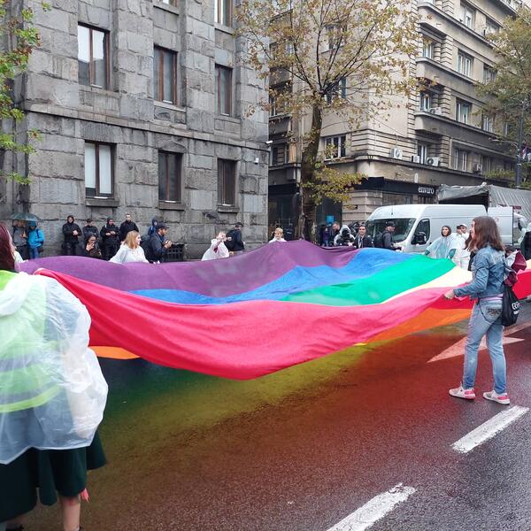 16.05 Zastava duginih boja razvijena ispred Ustavnog suda