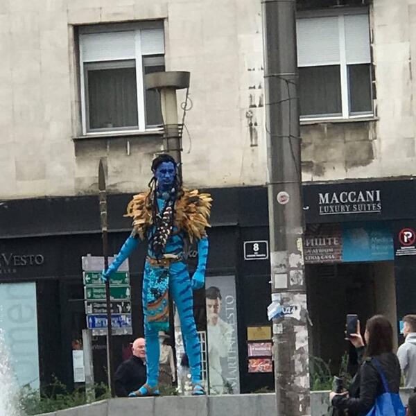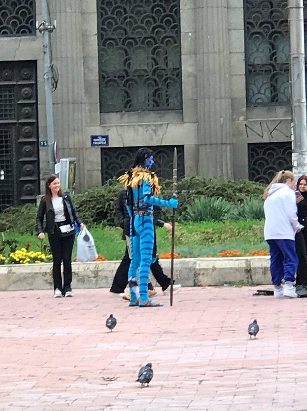 Beograđanima je ovaj tmuran i kišni dan ulepšao jedan čovek koji je u kostimu Avatara šetao gradom i zabavljao prolaznike.