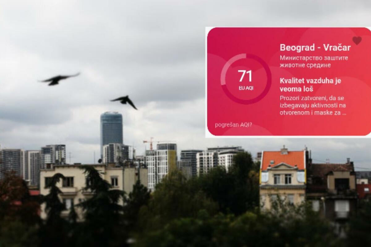 Za Vračar su popaljeni crveni alarmi na aplikacijama koje pokazuju opasne čestice u vazduhu, a situacija je bila jako loša i u Dimitrija Tucovića.