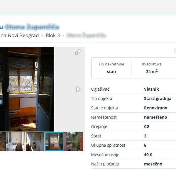 Tako se na oglasima ovih dana našla i garsonjena na Novom Beogradu.