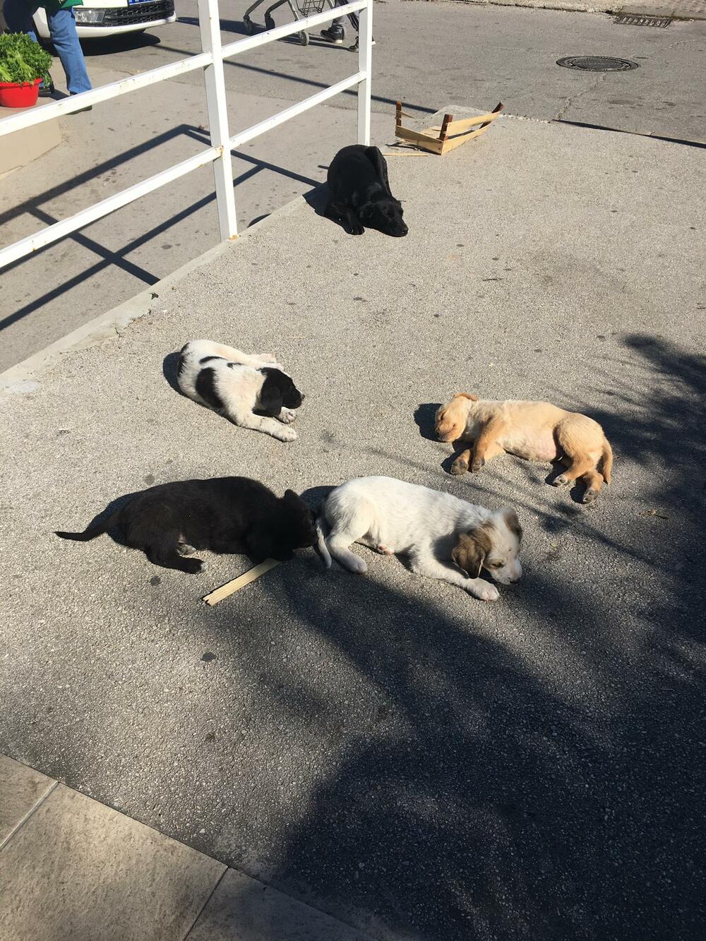 Tako smo danas naišli na ove preslatke kuce u beogradskom naselju Jajinci kako hvataju poslednje zrake sunca Miholjskog leta, pre početka hladnih i kišnih dana. 4 mladih kuca porešalo se jedno pored drugog, a tu je i njihova mama malo dalje od njih.