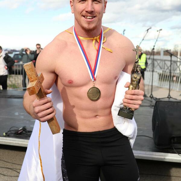 Tradicionalno plivanje za časni krst održano je danas na Dunavu u Zemunu, a najbrži je bio Dušan Novaković (24) iz Kikinde.