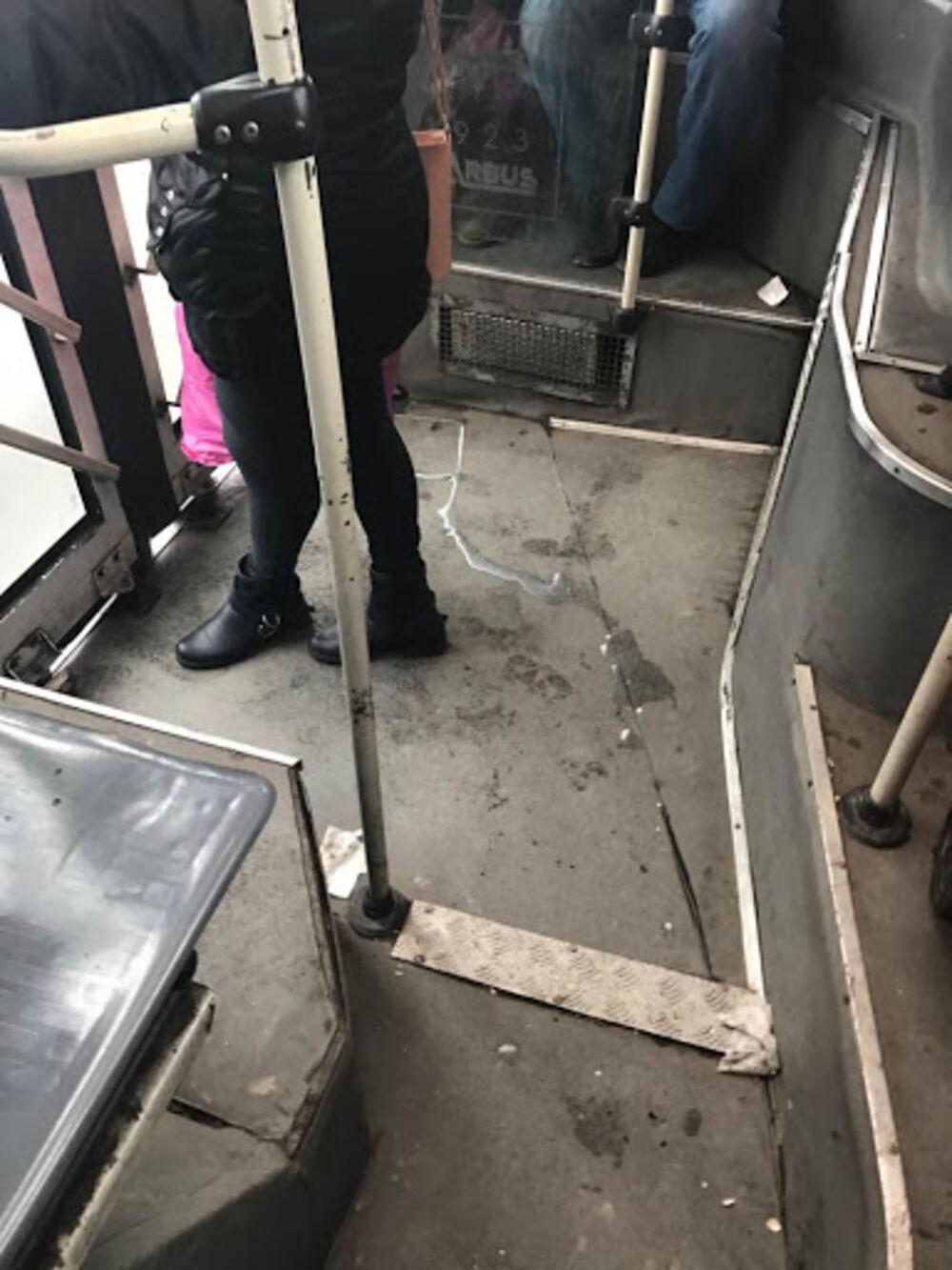 Buljim u telefon da bih zadržala ručak u utrobi - barem još neko vreme. Pažnju mi privlači pod koji je užasniji nego u bilo kom drugom autobusu. Ovo se po centru ne viđa.