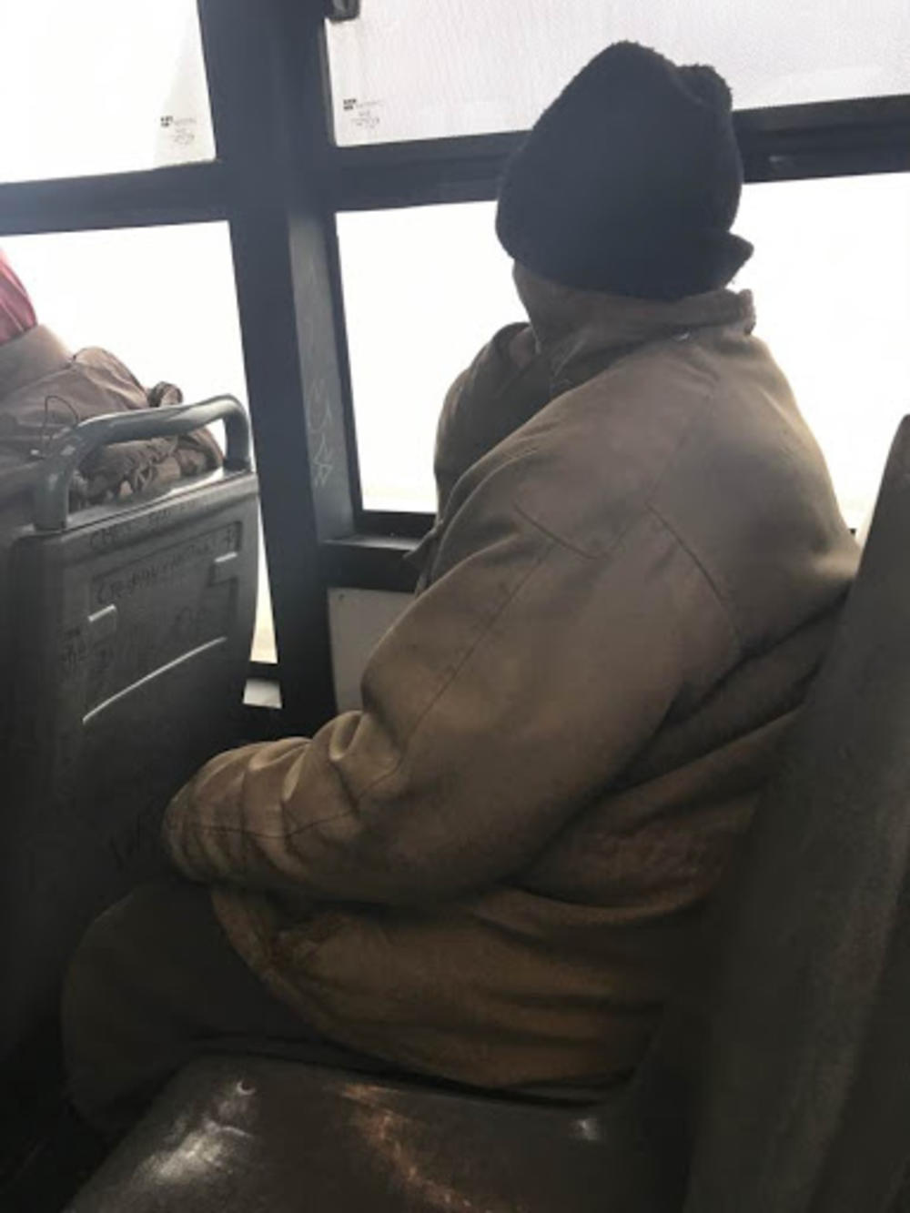 Na drugoj strani, blizu mene sedi stariji čovek. Nema ni 60 godina. Jakna je prljava, rukav poderan. Stiska promrzle ruke, gleda u pod. Na licu mu se vidi samo bol. Patnja je uklesana u njegove bore.