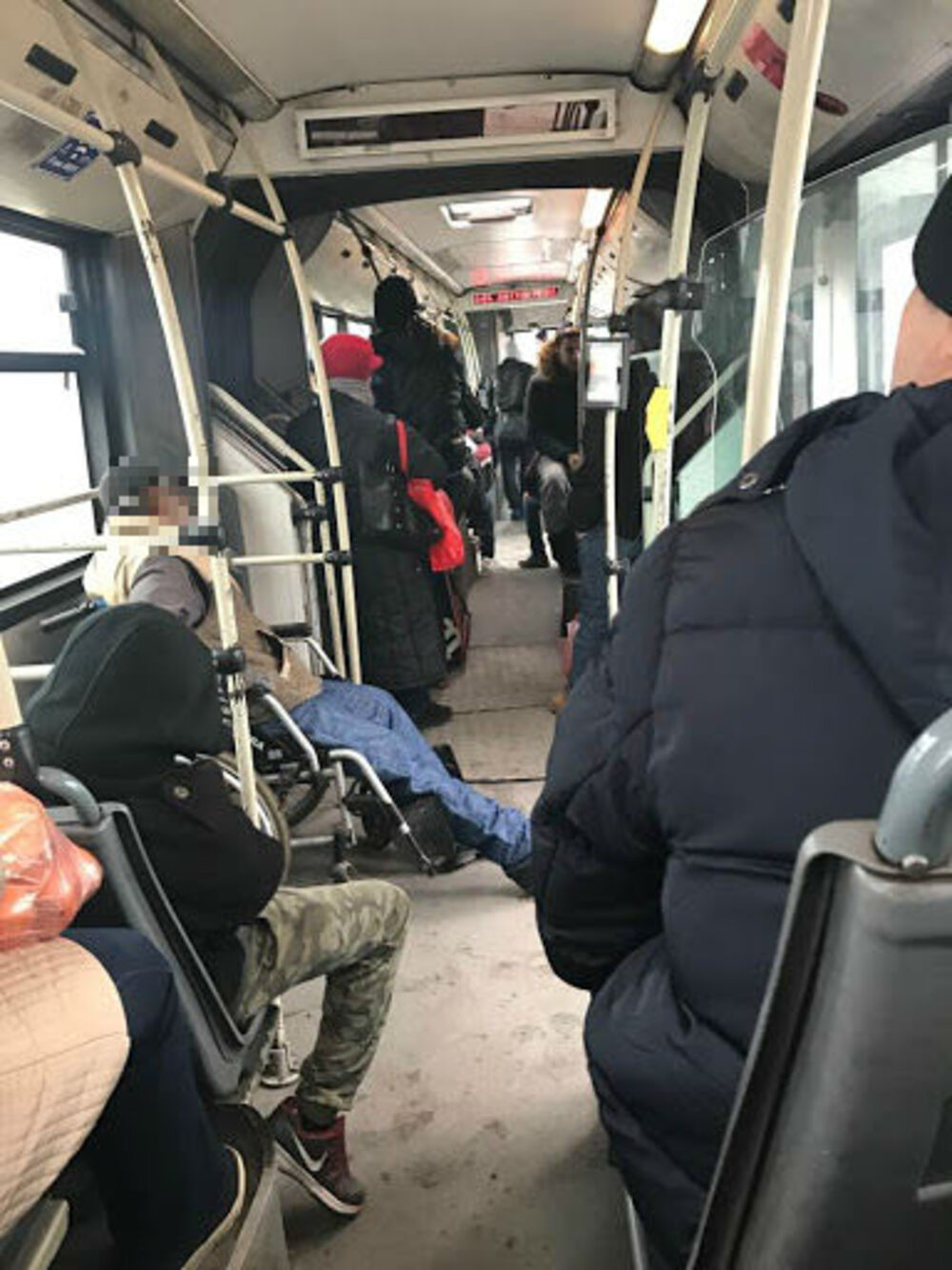 Okrećem se ka "krugu busa". Stariji čovek u invalidskim kolicima, koprca se, pokušava da zakoči točkove da se ne bi kotrljao po autobusu u njima. Pomoć ne traži jer jezik ne razume.