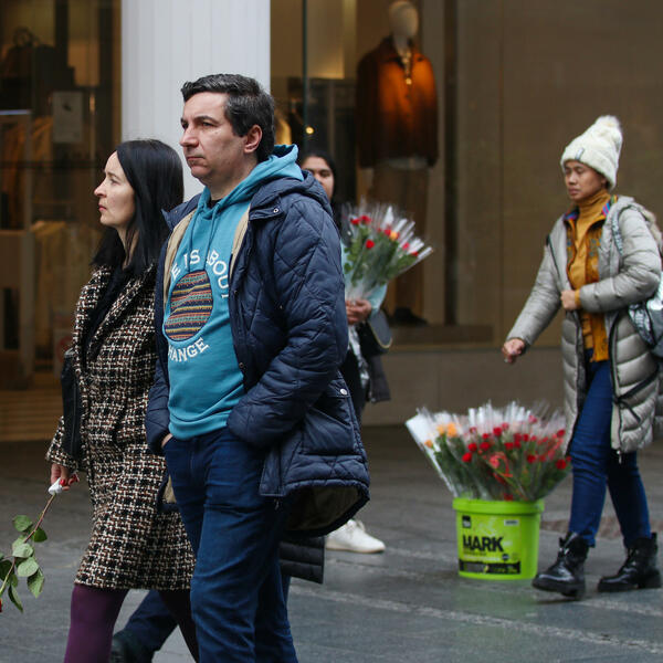Dame užurbano hodaju ulicama, noseći u rukama cveće koje su dobile na poklon.
