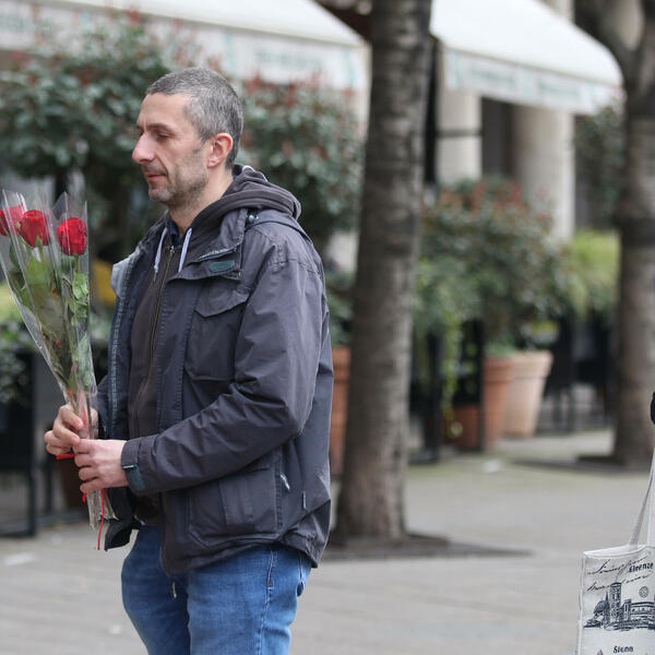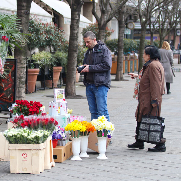 Sve vrvi od raznih buketa - prodavci ih prodaju, muškarci kupuju a žene dobijaju.