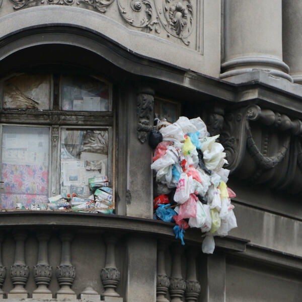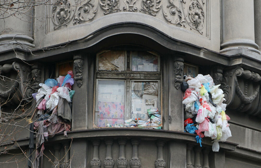 Stan je ispunjen otpadom toliko da kese sa smećem vire kroz prozore.