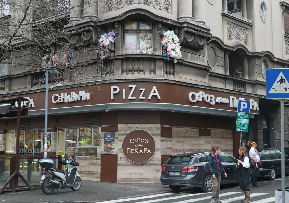 Ispod stana se nalazi pekara, a trotoarom svakodnevno cirkuliše veliki broj pešaka koji gaze po smeću.