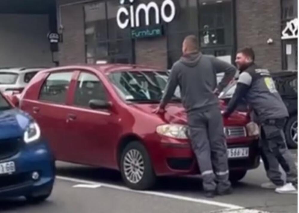 Kada su mladići videli šta se dešava, istrčali su na prometnu ulicu i zaustavili da vozilo ne krene dalje, sve do trenutka dok gospođa nije izašla iz prodavnice i ušla u svoj automobil.