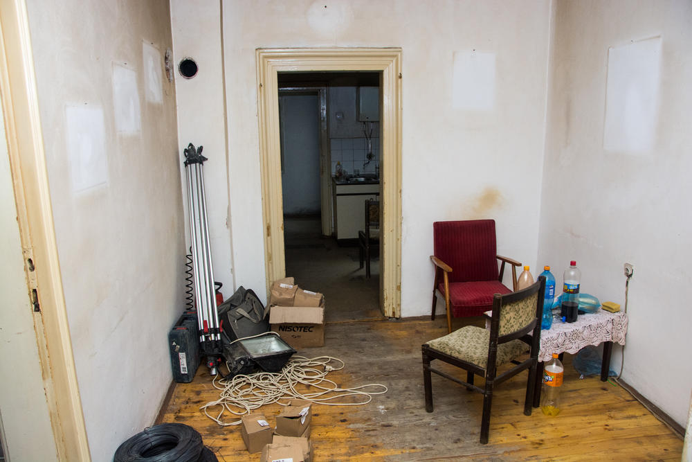 U njoj su spavali građevinci, a osim trošnih kreveta i pocepanih ćebadi, bilo je još tužnih prizora. Ruiniran parket, ogoljeni zidovi sa kojih otpadaju komadići davno nanetog kreča zaustavljali su dah na onaj tužan, najtužniji mogući način...