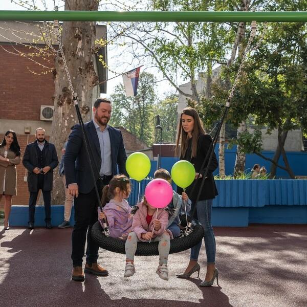 Novo dvorište vrtića obišli su i zamenica gradonačelnika Grada Beograda Vesna Vidović i sekretar Sekretarijata za obrazovanje i dečju zaštitu Grada Beograda Nenad Radić. Tom prilikom, zamenica gradonačelnika izjavila je “Deca će ovde imati razne aktivnosti, družiće se i mi ćemo nastaviti, kao i do sada, da ulažemo u vrtiće, da ih obnavljamo, rekonstruišemo i naravno da rekonstruišemo i sva dečja igrališta”.