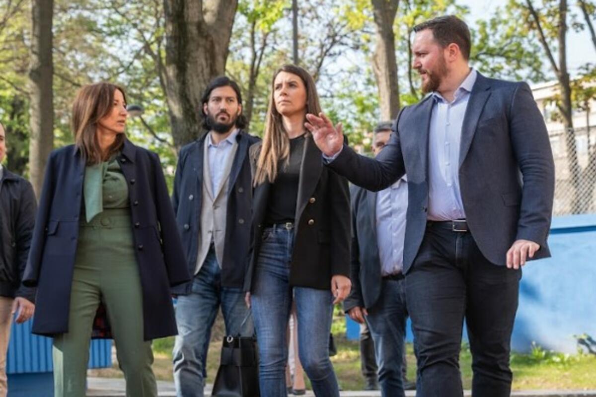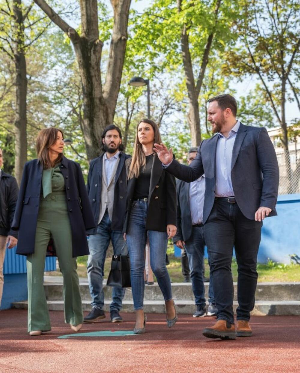 Novo dvorište vrtića obišli su i zamenica gradonačelnika Grada Beograda Vesna Vidović i sekretar Sekretarijata za obrazovanje i dečju zaštitu Grada Beograda Nenad Radić