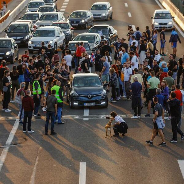 Nakon toga, učesnici protesta krenuli su u šetnju Ulicom kneza Miloša do auto-puta kod Mostarske petlje gde su se učesnici protesta okupili oko 18.45 i blokirali tu međunarodnu saobraćajnicu u oba smera.